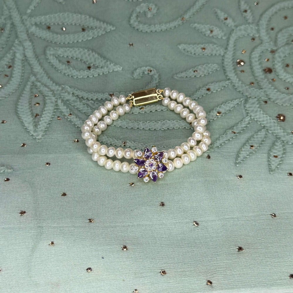 Pearl Type: Genuine Freshwater PearlsPearl Shape: Corn Shape Pearl Quality: AAA Stones: amythist & C’zPearl size : 4.5mm ApproxLength: 6.5 Inches ApproxBase Metal: silver mixed alloy