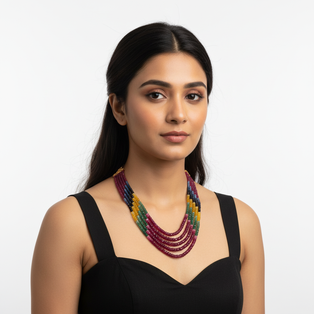 Stone Type: Real Natural Ruby, Emerald, Blue & yellow Sapphire Stone Shape: Facted Beeds Stone origin: AfricaStone size : 3.5-4 mm approximately Length: 17 inchs