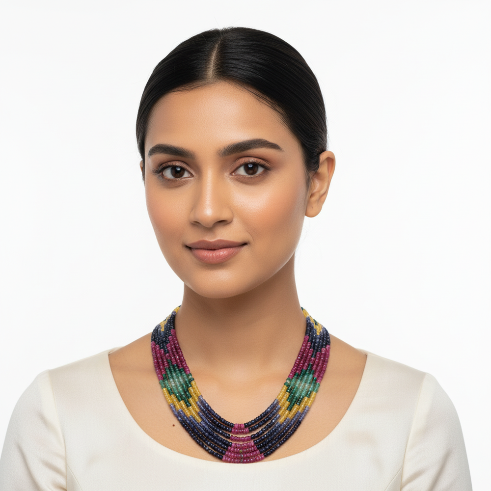 Stone Type: Real Natural Ruby, Emerald, Blue & yellow SapphireStone Shape: Facted Beeds Stone origin: AfricaStone size : 3.5-4 mm approximatelyLength: 17 -20 Approx