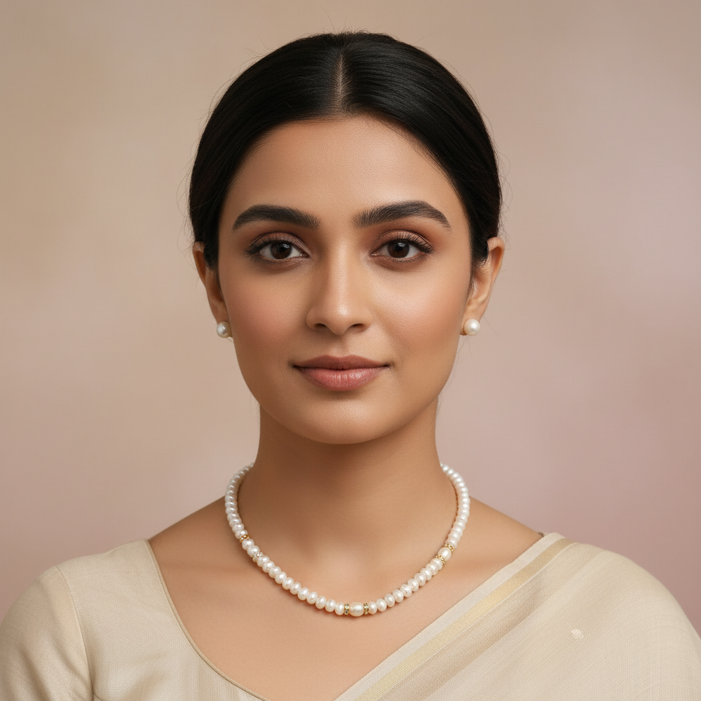 Pearl Type: Genuine Freshwater Pearls Pearl Shape: Corn Pearl Quality: AAA pearl size : 5.5 aprox Length: 16 Inches Approxmetal : Alloy