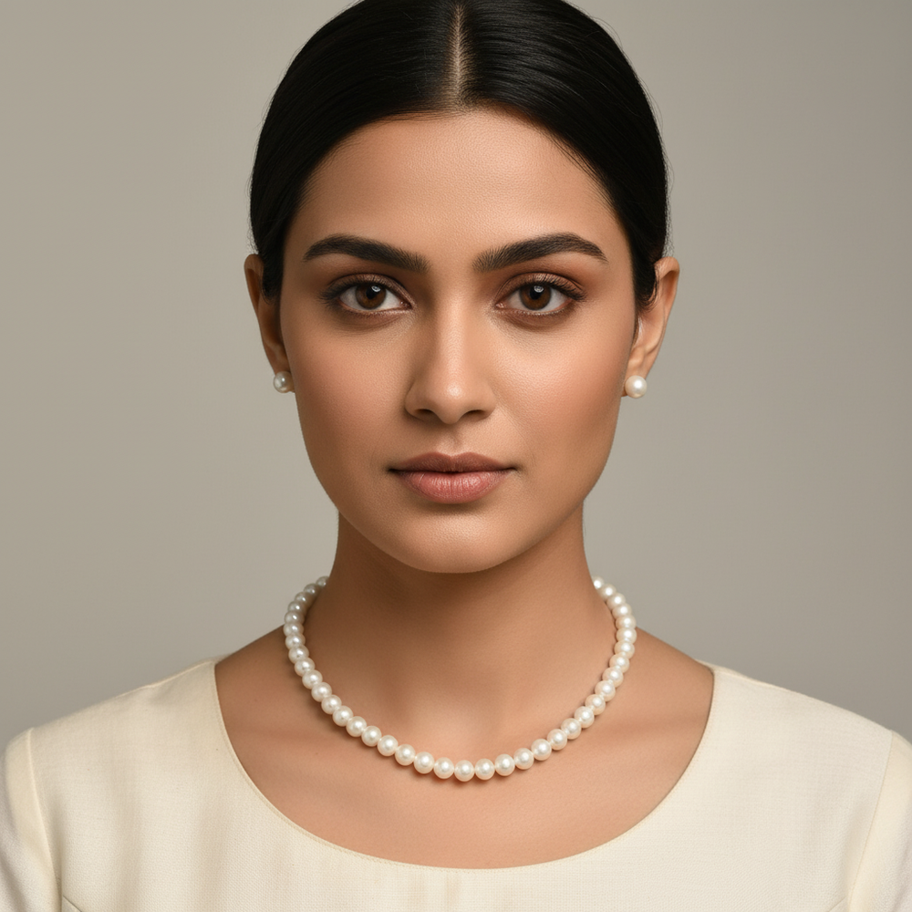 Pearl Type: Genuine Freshwater Pearls Pearl Shape: RoundPearl Quality: AAA pearl size : 8 aprox Length: 16 Inches Approx.