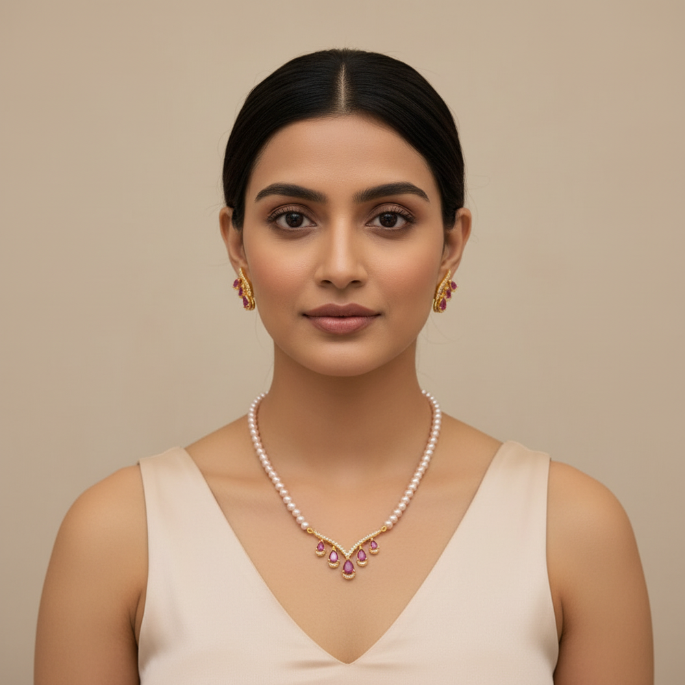 Pearl Type: Genuine Freshwater Pearls Pearl Shape: cornPearl Quality: Very Good (AAA) Stones: Onyx or C’z pearl size : 5.5 mmLength: 16 Inches Approx Base Metal: silver mixed alloy